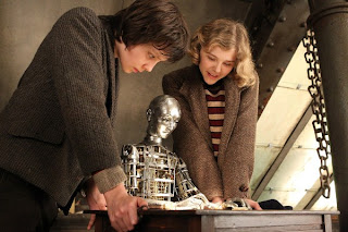 Hugo Cabret (Asa Butterfield) lives alone at a train station in Paris where he fixes clocks throughout the station in secrecy. With his father (Jude Law) dead due to a fire at a museum and his uncle Claude (Ray Winstone) away, Hugo spends his time making sure the clocks work while stealing parts to fix an automaton that his father had found at the museum. Still, Hugo tries to evade the snoopy station inspector (Sacha Baron Cohen) while getting into trouble with a bitter toy shop owner name Mr. George (Ben Kinglsey) who notices that Hugo had been stealing as he also takes away his notebook. Hugo follows George to his home as he sees a young girl named Isabel (Chloe Grace Moretz) who notices Hugo outside as he asks for his notebook back.