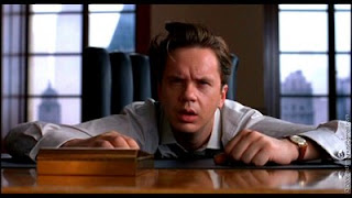 The script by the Coen Brothers and Sam Raimi does have a bit of formulaic air to the story such as Norville Barnes’ evolution from naïve mail clerk to a smug president who starts to act like the man who is trying to make him look like a fool. Yet, it does manage to work in the way that Norville is portrayed as a guy who just wants to help a company after the death of its founder as he would create an idea that would eventually help the company out much to the dismay of the board and its antagonist Sidney J. Mussburger. Mussburger isn’t a typical villain due to the fact that he’s very smart while slyly plays mentor to the well-meaning Norville and build him up only to tear him down.