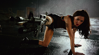 Josh Brolin is wonderful as the villainous Dr. Block who later becomes a zombie wanting to kill his wife for her affairs. Marley Shelton is fun and sexy as the syringe-shooting Dakota Block who is one woman not to be messed with. In a role that is definitely inspired by Kurt Russell, Freddy Rodriguez gives a star-making performance as El Wray. Rodriguez steals nearly every scene he's in whether he's doing back flips, twirling guns, or anything. Rodriguez is the man!!! Finally, there's Rose McGowan returning to the cinema after a few years on TV for Charmed. McGowan is great and sexy as the back-talking, funny Cherry Darling who loses her leg and tries to find her way to fight back. Then when she gets that machine gun as a new leg, she really owns the film. It's a great, comeback performance from Rose McGowan who also does great work as Pam in the Death Proof segment.