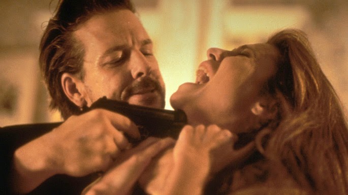 The film is a home invasion story about an escaped criminal who hides out at the home of a man who has become estranged from his wife as they’re taken hostage at home. Yet, it’s a film about control and trust where the criminal Michael Bosworth (Mickey Rourke) is waiting for his lawyer/lover Nancy Breyers (Kelly Lynch) to be cleared from accusations that she was the one who broke him out of jail as he is being charged for all sorts of crimes. With the help of his brother Wally (Elias Koteas) and an unhinged, half-wit criminal Albert (David Morse), Bosworth would hide out at the home of Nora Cornell (Mimi Rogers) who is selling her home as she and her husband Tim (Anthony Hopkins) are estranged due to Tim’s infidelity with a young woman. Once Bosworth takes control of the Cornell home, he would instill elements of trust where Nora is more likely to trust Bosworth than Tim as it relates to her life and the life of their kids in the 15-year old May (Shawnee Smith) and the eight-year old Zack (Danny Gerard).