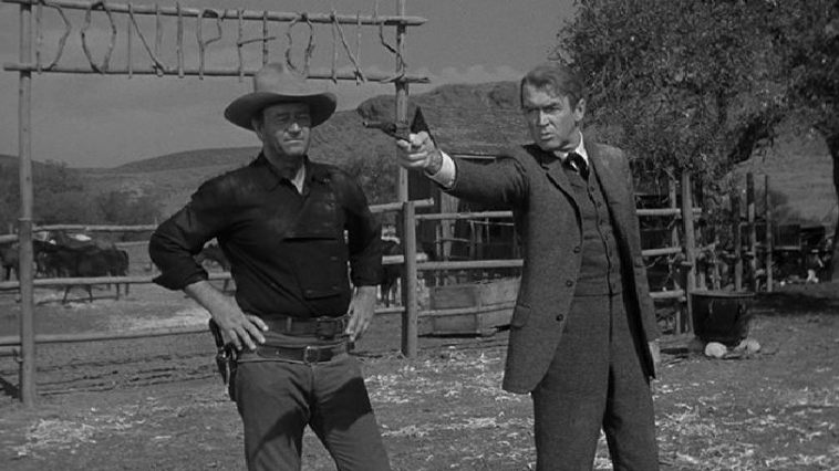The film is essentially a reflective story in which a senator recalls a time in his life when he was just an attorney arriving into a small town in the West where he tries to stand up against a notorious outlaw where he later teams up with a gunslinger and a few others in making a stand against him. Especially as he would later become a pillar of hope in a town that is still ravaged with fear prompting this attorney from the East to make a difference. The film’s screenplay begins with Ranse Stoddard (James Stewart) and his wife Hallie (Vera Miles) arriving to the small town of Shinbone as the local press wonder why he’s there. He then tells them the story of how he first came to the town 25 years earlier where he would meet Hallie and stand up to the outlaw known as Liberty Valance (Lee Marvin) after trying to stop him from robbing a widow during a stagecoach robbery. After being healed by Hallie and a local rancher in Tom Doniphon (John Wayne), Stoddard would do whatever he can to help the town.
